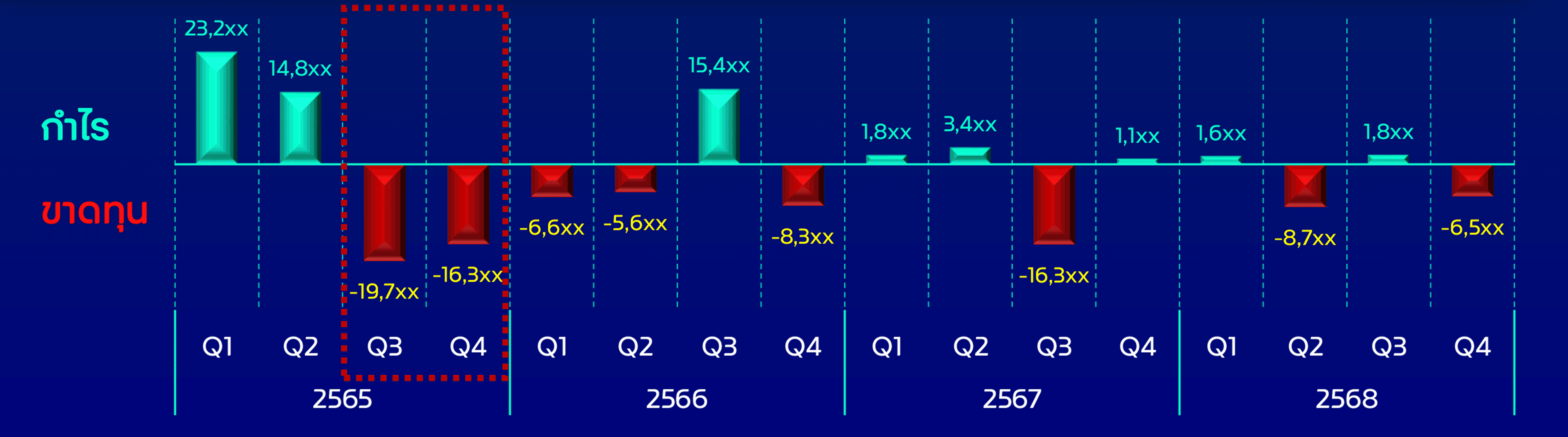 ส่วนต่างมูลค่าน้ามันดิบคงคลังที่แปรผันตามราคาตลาดโลกรายไตรมาส (ล้านบาท)